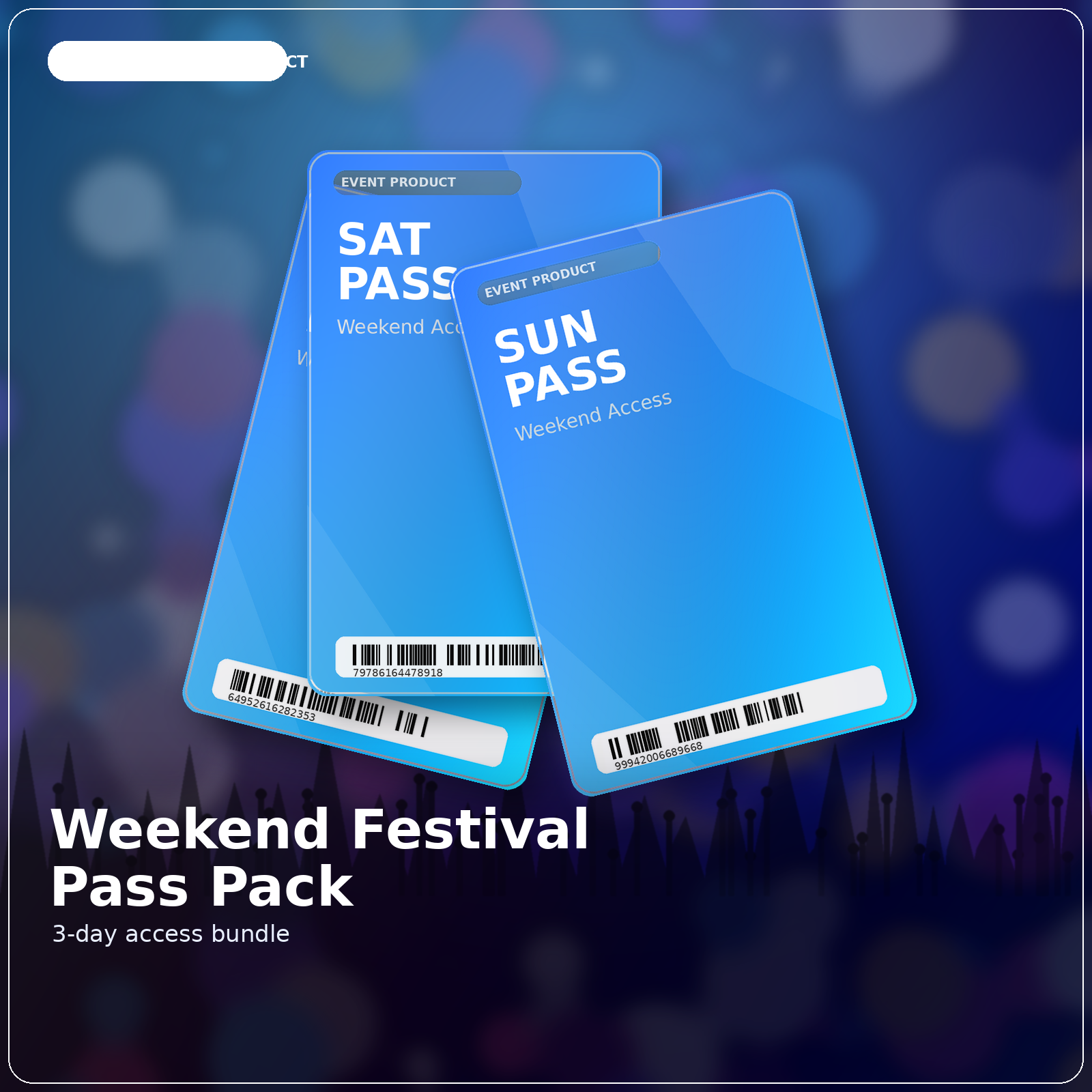 The Weekend Festival Pass Pack is a strong fit for multi-day events that need a clearer structure than single ID card entry alone.A multi-day pass set for guests or teams attending across a full event